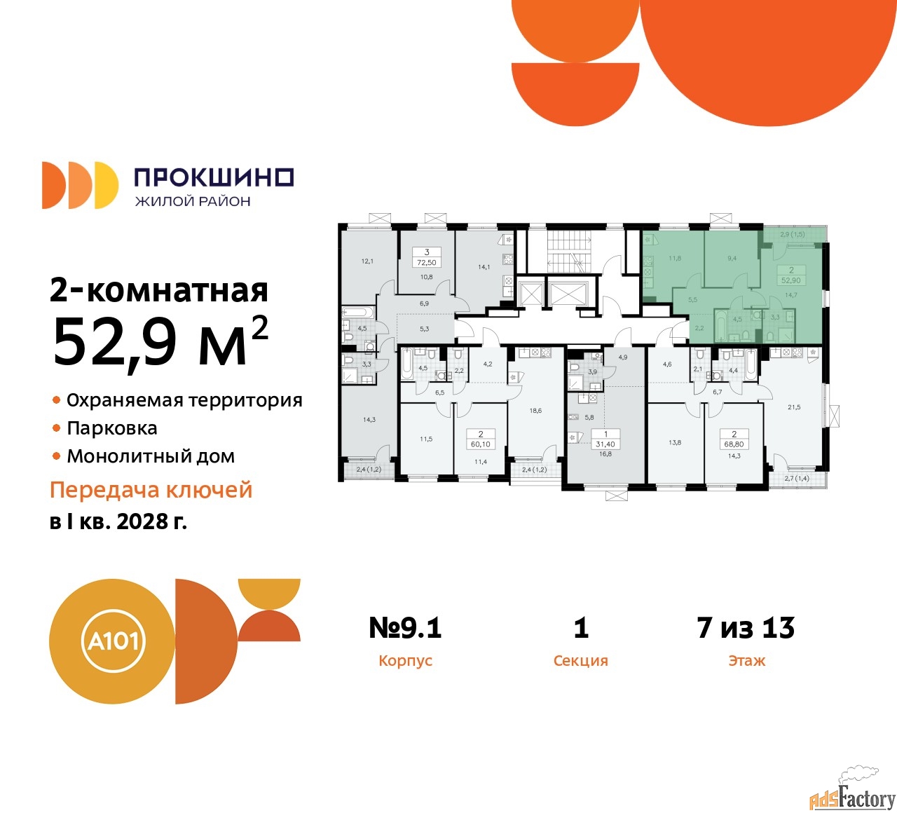 | Общая площадь (кв.м) | 52.9 |