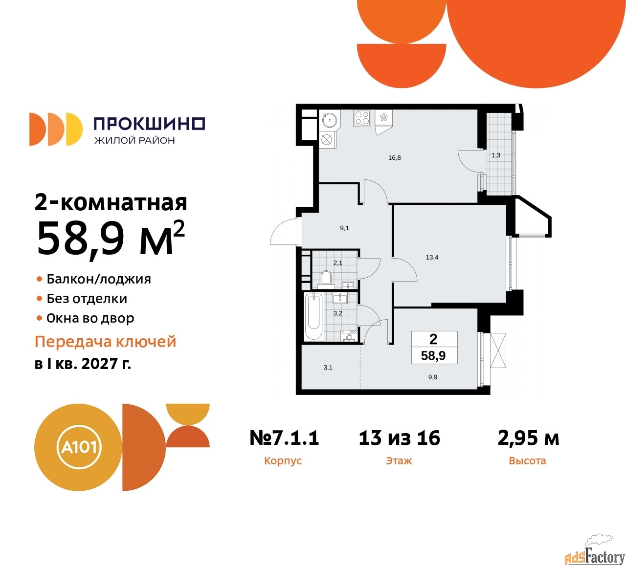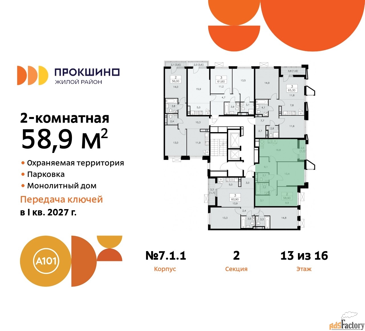 Артикул квартиры по базе застройщика 58К-7.1.1-114.