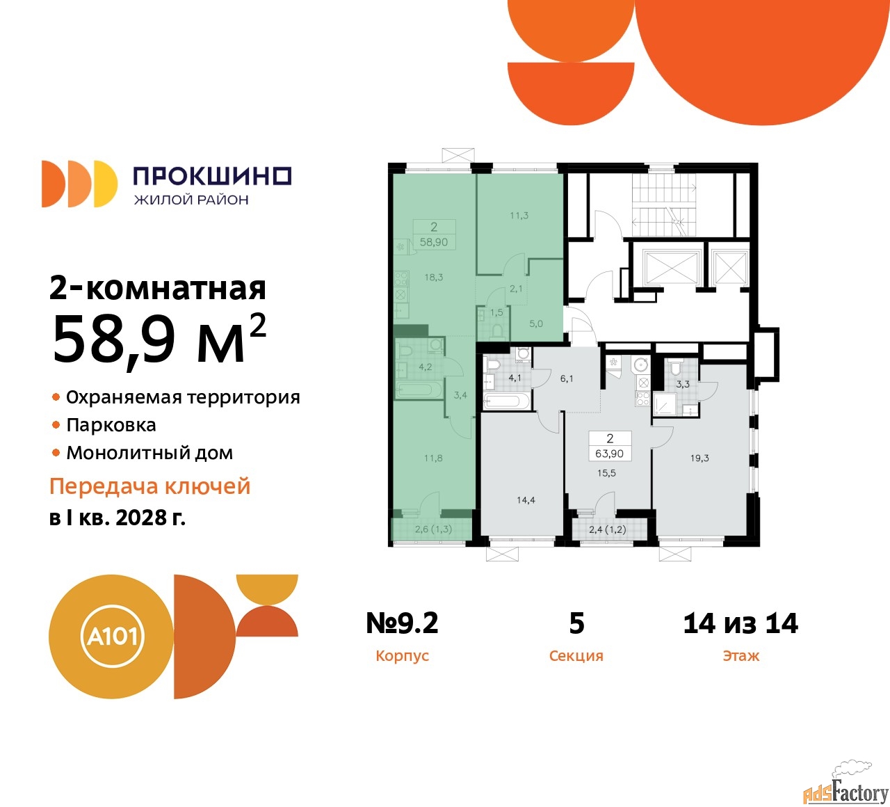 | Общая площадь (кв.м) | 58.9 |