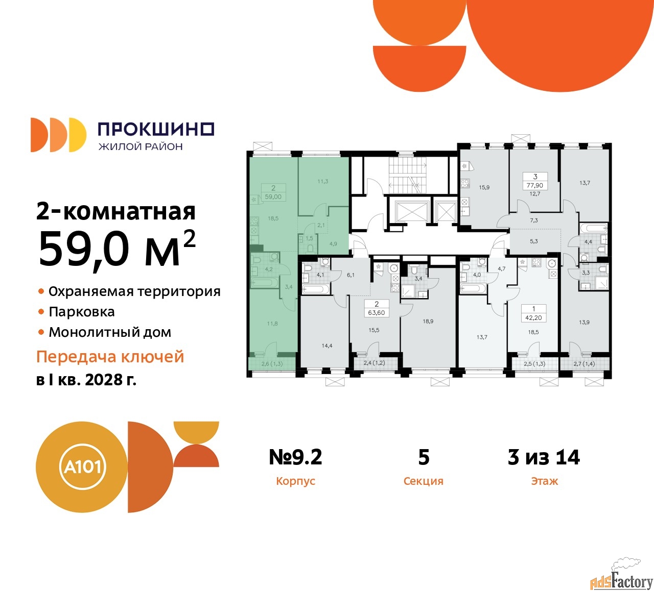 Артикул квартиры по базе застройщика 58К-9.2-204.