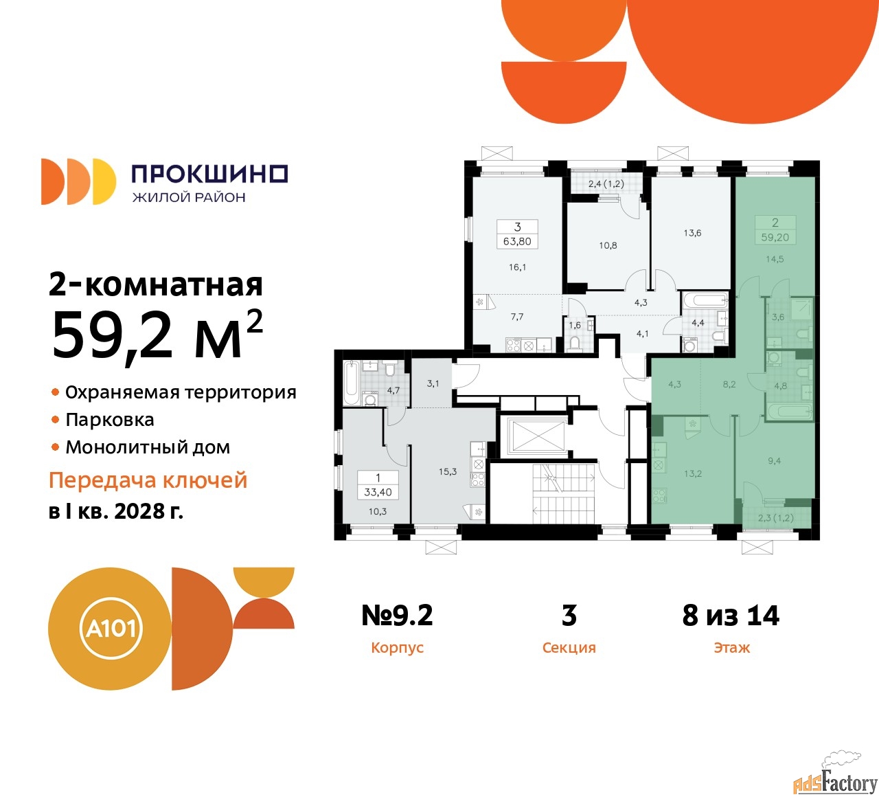 | Общая площадь (кв.м) | 59.2 |