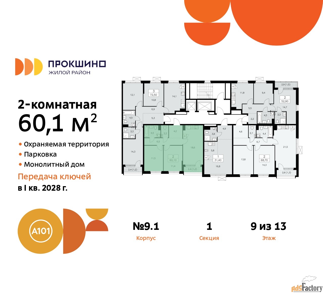 ЖК «Прокшино» расположен в 7,6 км от МКАД в Новой Москве. В 8 минутах пешком находится станция метро «Прокшино» быстрой и комфортной красной линии метро. Высокую транспортную доступность обеспечивают и два крупных шоссе, до которых легко доехать за 5 минут по новой скоростной автотрассе Солнцево – Бутово – Варшавское шоссе. Жилой комплекс «Прокшино» входит в кластер Прокшино. В районе появятся дома комфорт и бизнес-класса с подземным паркингом, закрытыми благоустроенными дворами без машин, местами для активного и созерцательного отдыха, магазинами, бытовыми сервисами и другими коммерческими объектами. Рядом пруд с собственной набережной и городской парк «Хованская дубрава». Для маленьких жителей построят детские сады, образовательный комплекс. (AQID02508366)