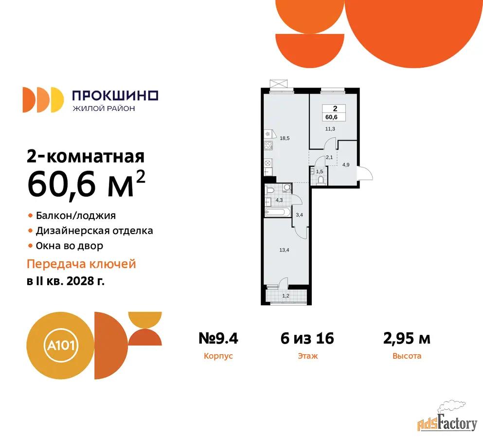 | Общая площадь (кв.м) | 60.6 |