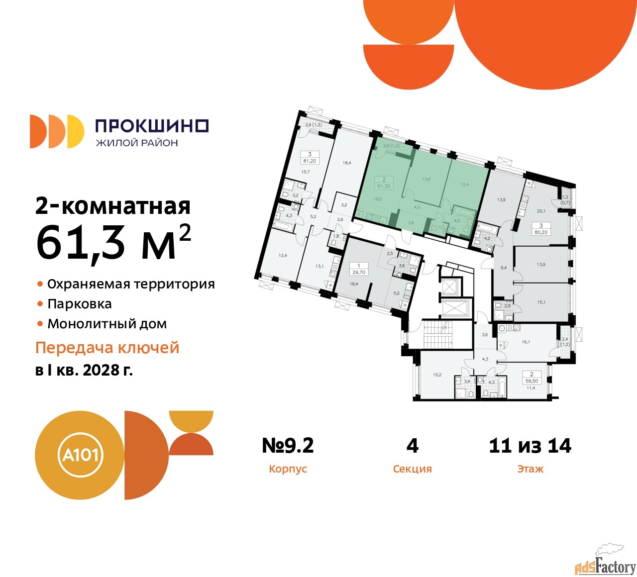 | Общая площадь (кв.м) | 61.3 |