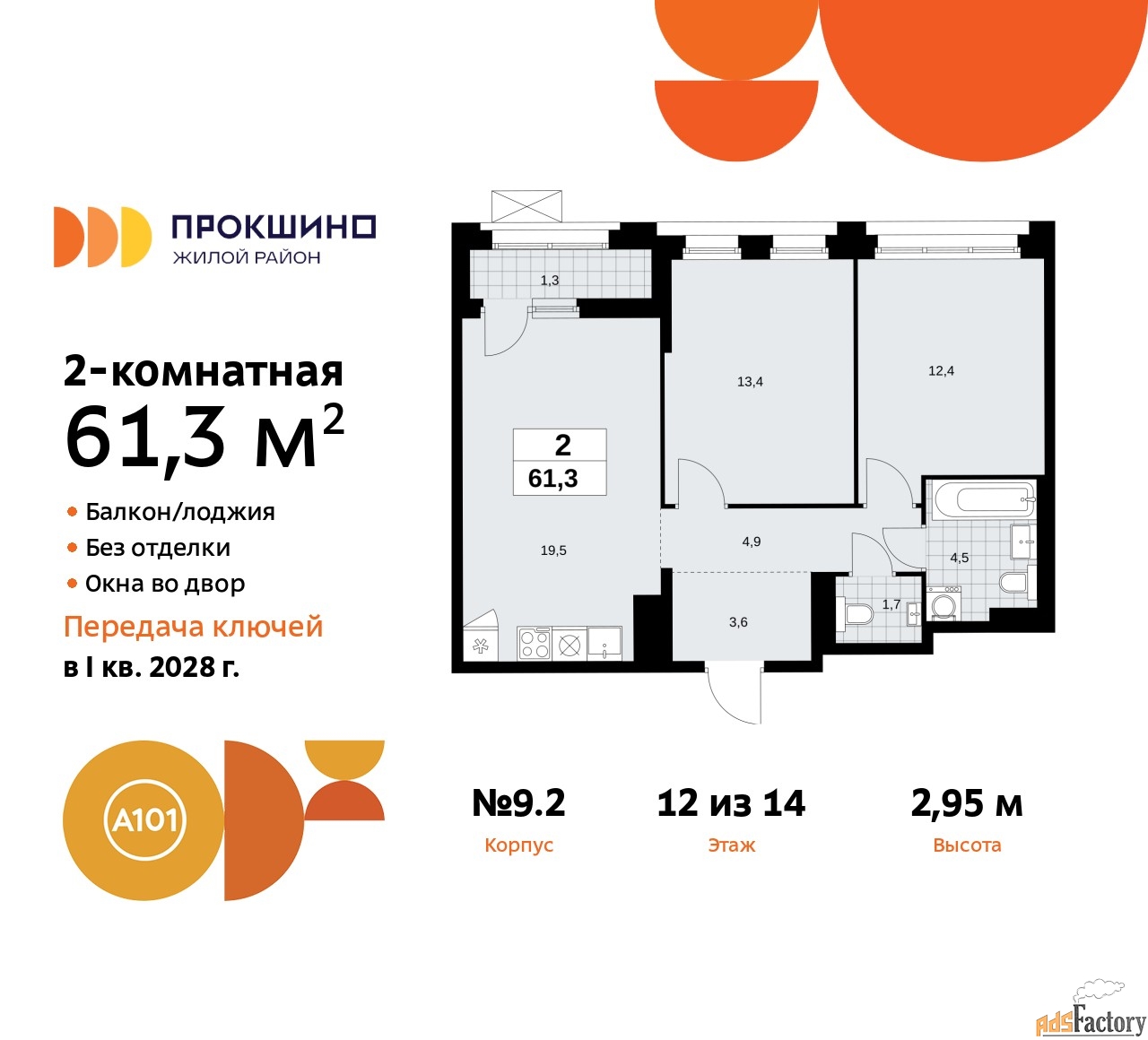 | Общая площадь (кв.м) | 61.3 |