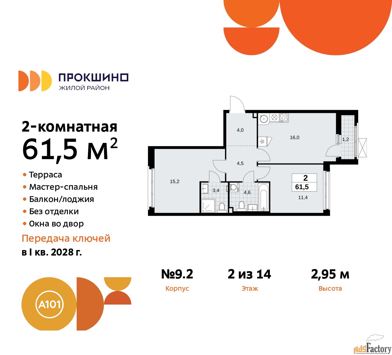 ЖК «Прокшино» расположен в 7,6 км от МКАД в Новой Москве. В 8 минутах пешком находится станция метро «Прокшино» быстрой и комфортной красной линии метро. Высокую транспортную доступность обеспечивают и два крупных шоссе, до которых легко доехать за 5 минут по новой скоростной автотрассе Солнцево – Бутово – Варшавское шоссе. Жилой комплекс «Прокшино» входит в кластер Прокшино. В районе появятся дома комфорт и бизнес-класса с подземным паркингом, закрытыми благоустроенными дворами без машин, местами для активного и созерцательного отдыха, магазинами, бытовыми сервисами и другими коммерческими объектами. Рядом пруд с собственной набережной и городской парк «Хованская дубрава». Для маленьких жителей построят детские сады, образовательный комплекс. (AQID02508463)