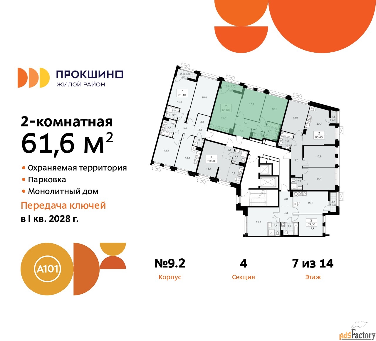 | Общая площадь (кв.м) | 61.6 |