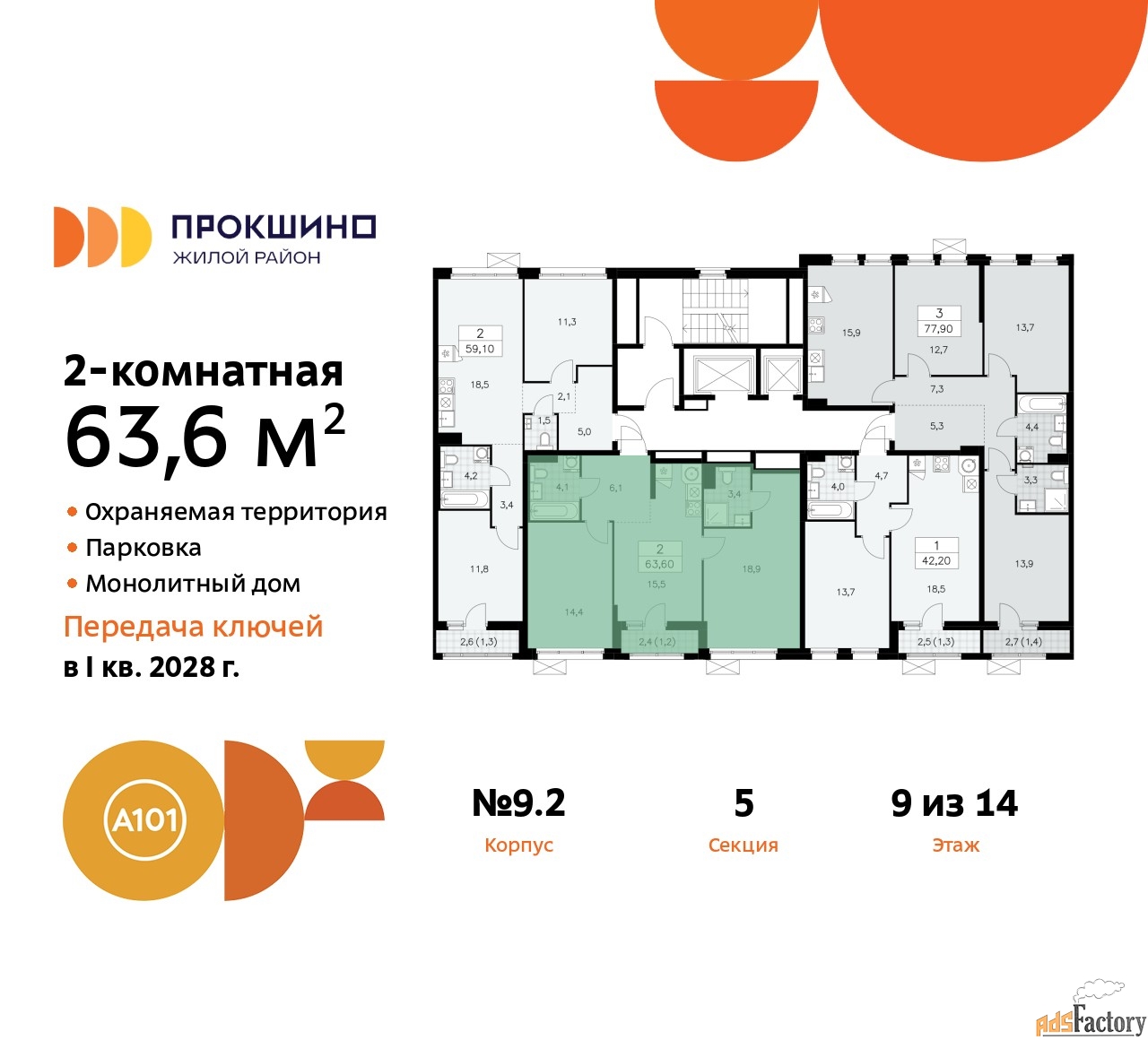 | Общая площадь (кв.м) | 63.6 |