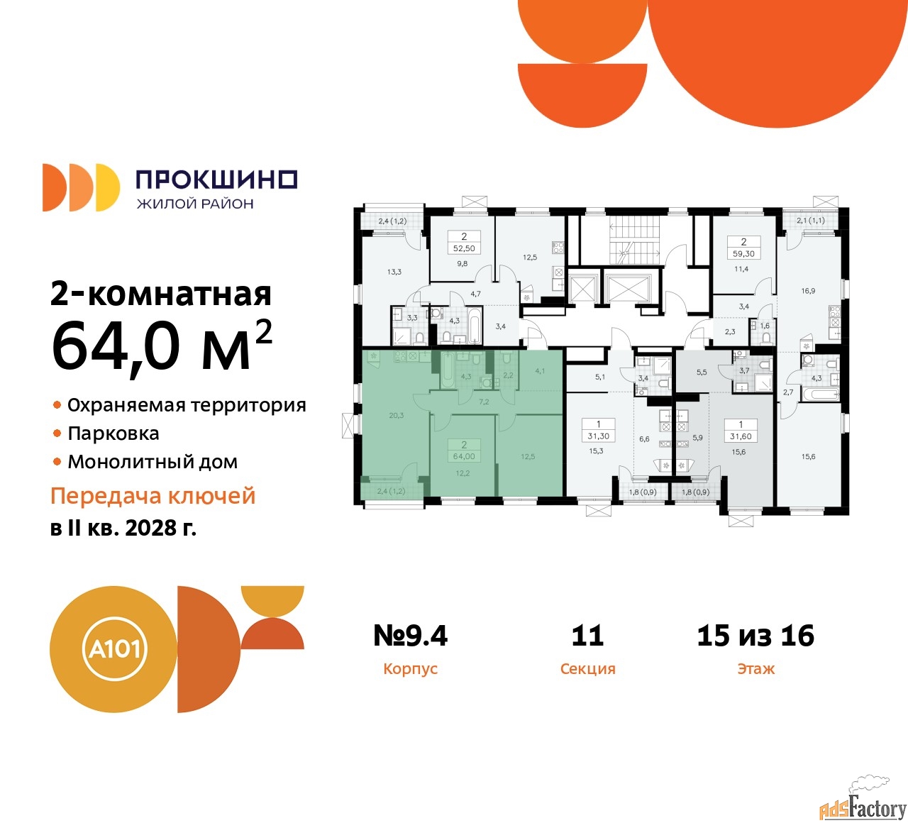 | Общая площадь (кв.м) | 64 |