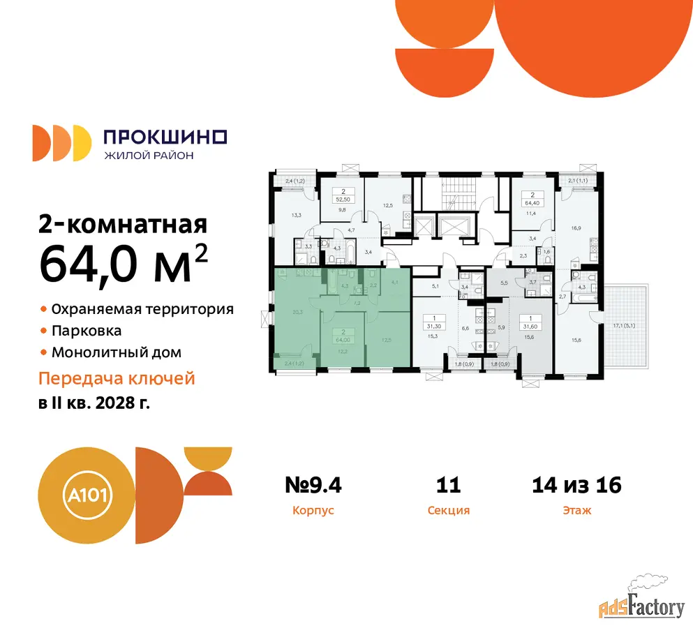 | Общая площадь (кв.м) | 64 |
