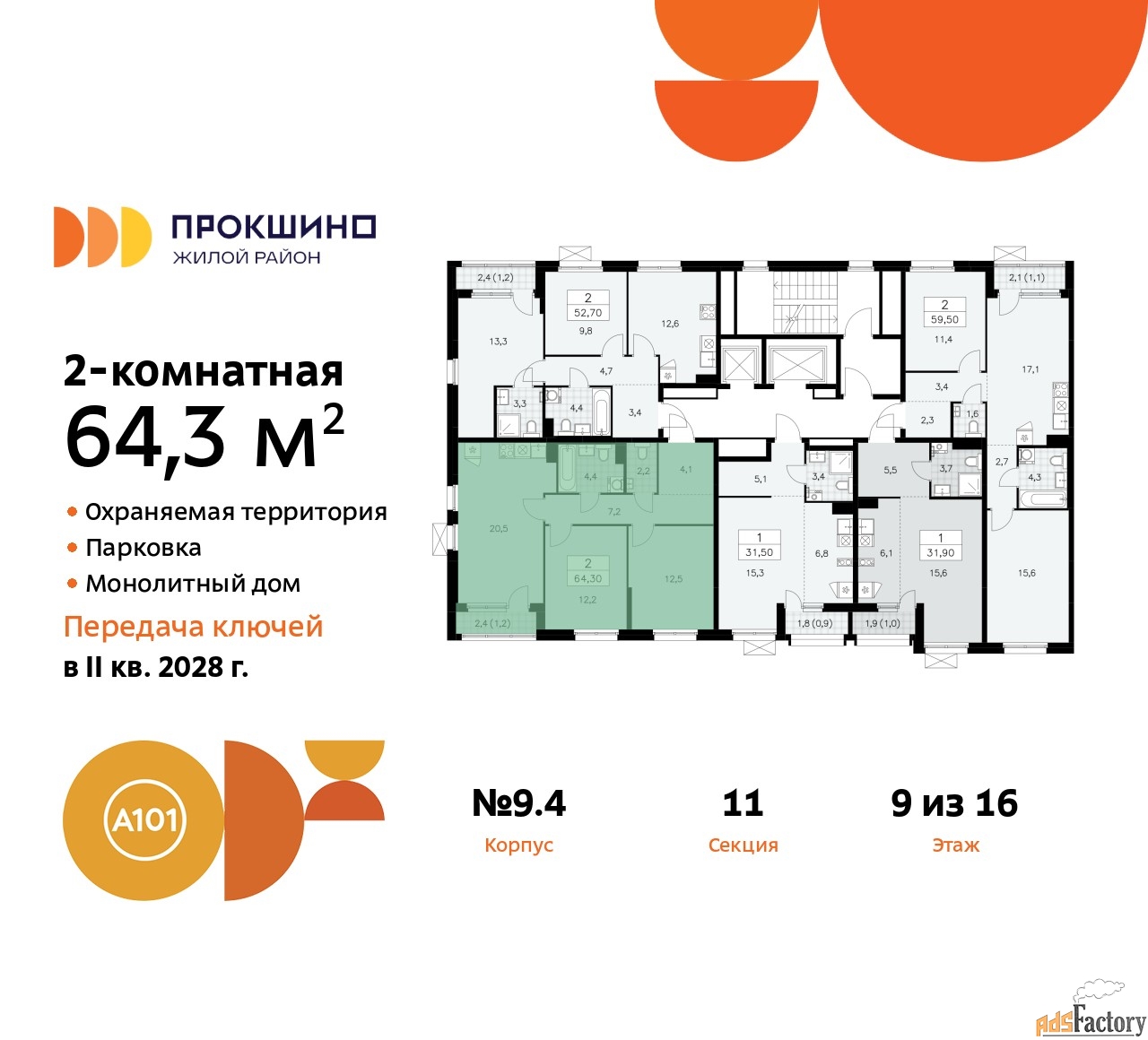 | Общая площадь (кв.м) | 64.3 |