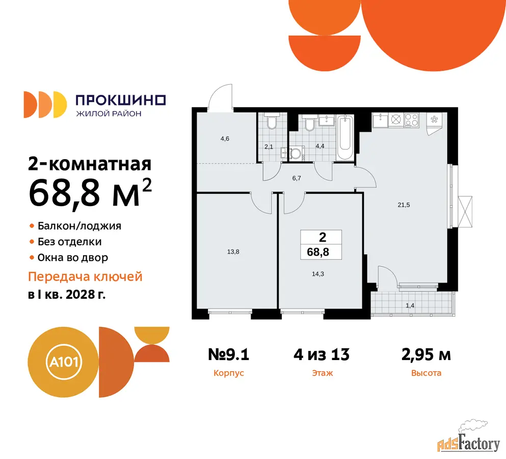 | Общая площадь (кв.м) | 68.8 |