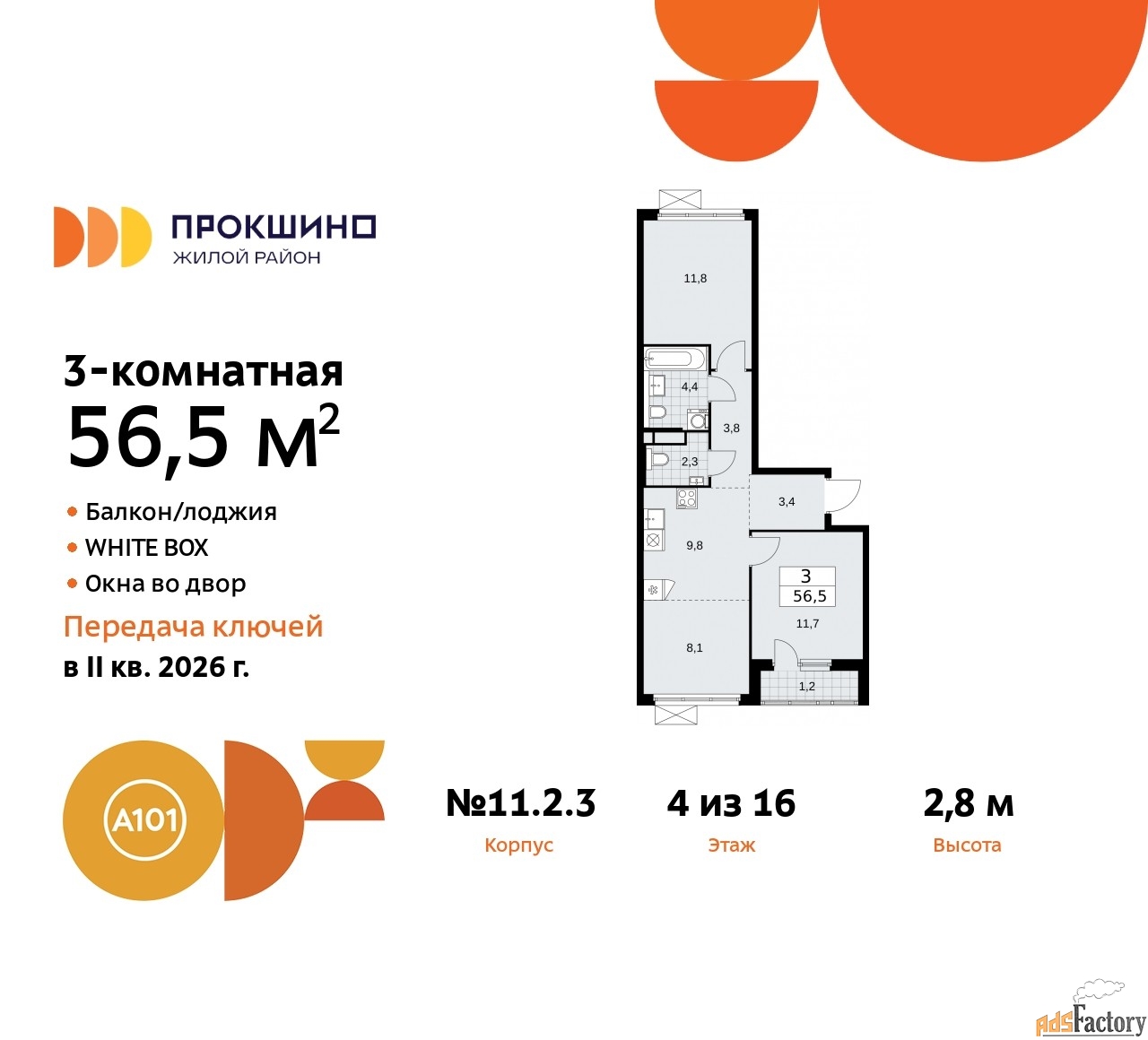 | Общая площадь (кв.м) | 56.5 |
