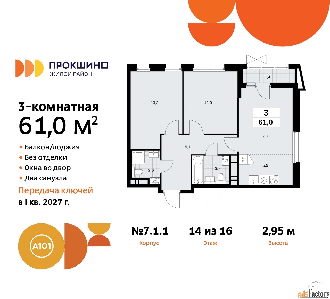 Артикул квартиры по базе застройщика 58К-7.1.1-187.