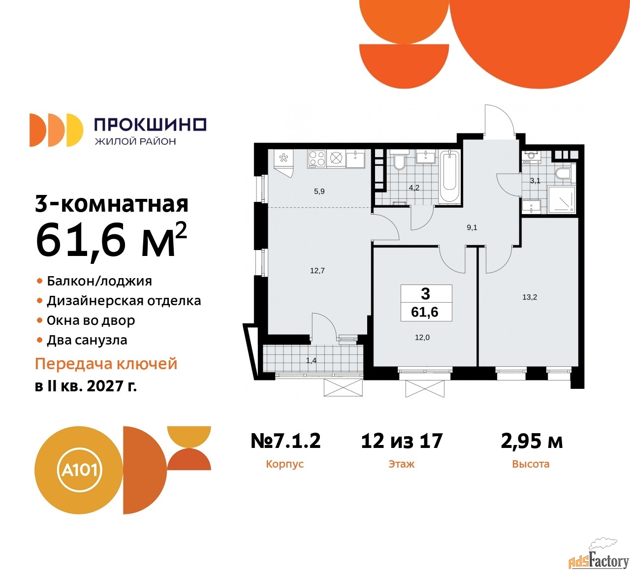 Артикул квартиры по базе застройщика 58К-7.1.2-250.