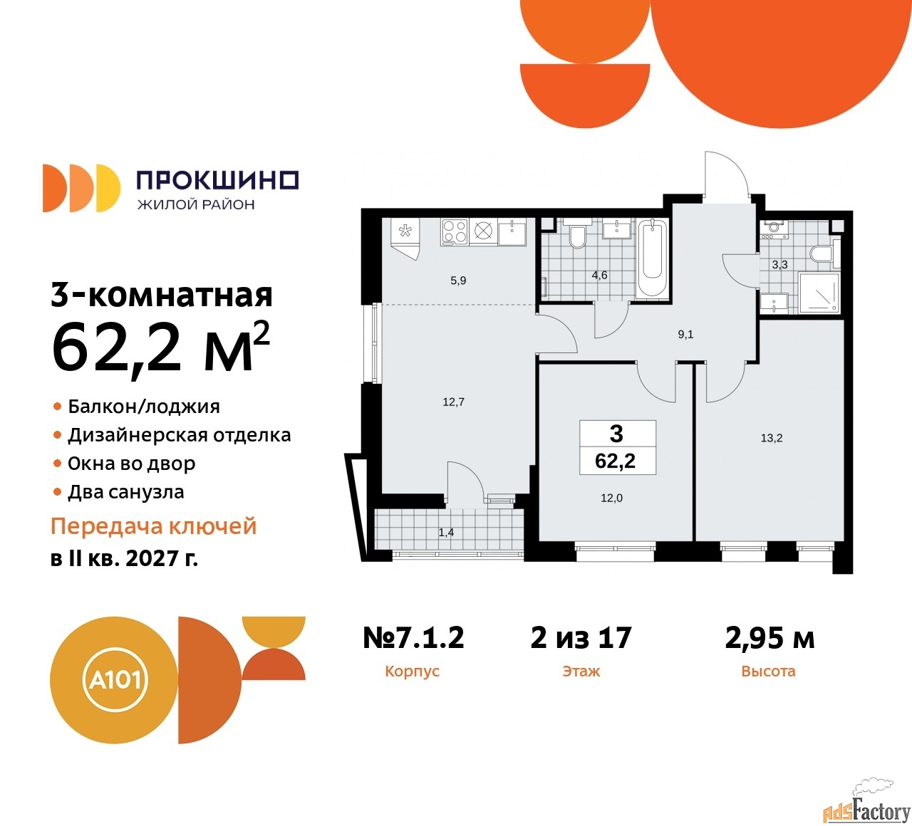 Артикул квартиры по базе застройщика 58К-7.1.2-200.