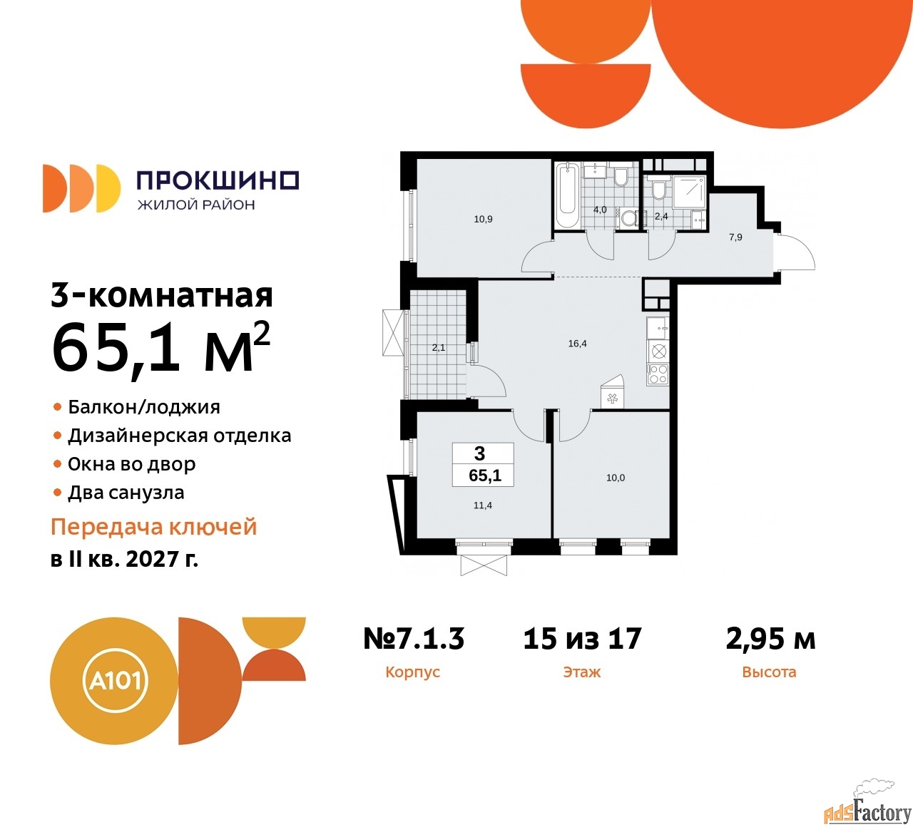 | Высота потолков (м.) | 2.95 |