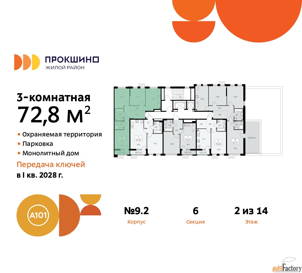 | Общая площадь (кв.м) | 72.8 |