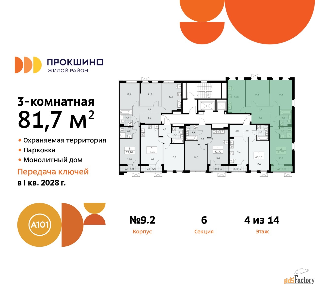 ЖК «Прокшино» расположен в 7,6 км от МКАД в Новой Москве. В 8 минутах пешком находится станция метро «Прокшино» быстрой и комфортной красной линии метро. Высокую транспортную доступность обеспечивают и два крупных шоссе, до которых легко доехать за 5 минут по новой скоростной автотрассе Солнцево – Бутово – Варшавское шоссе. Жилой комплекс «Прокшино» входит в кластер Прокшино. В районе появятся дома комфорт и бизнес-класса с подземным паркингом, закрытыми благоустроенными дворами без машин, местами для активного и созерцательного отдыха, магазинами, бытовыми сервисами и другими коммерческими объектами. Рядом пруд с собственной набережной и городской парк «Хованская дубрава». Для маленьких жителей построят детские сады, образовательный комплекс. (AQID02508573)