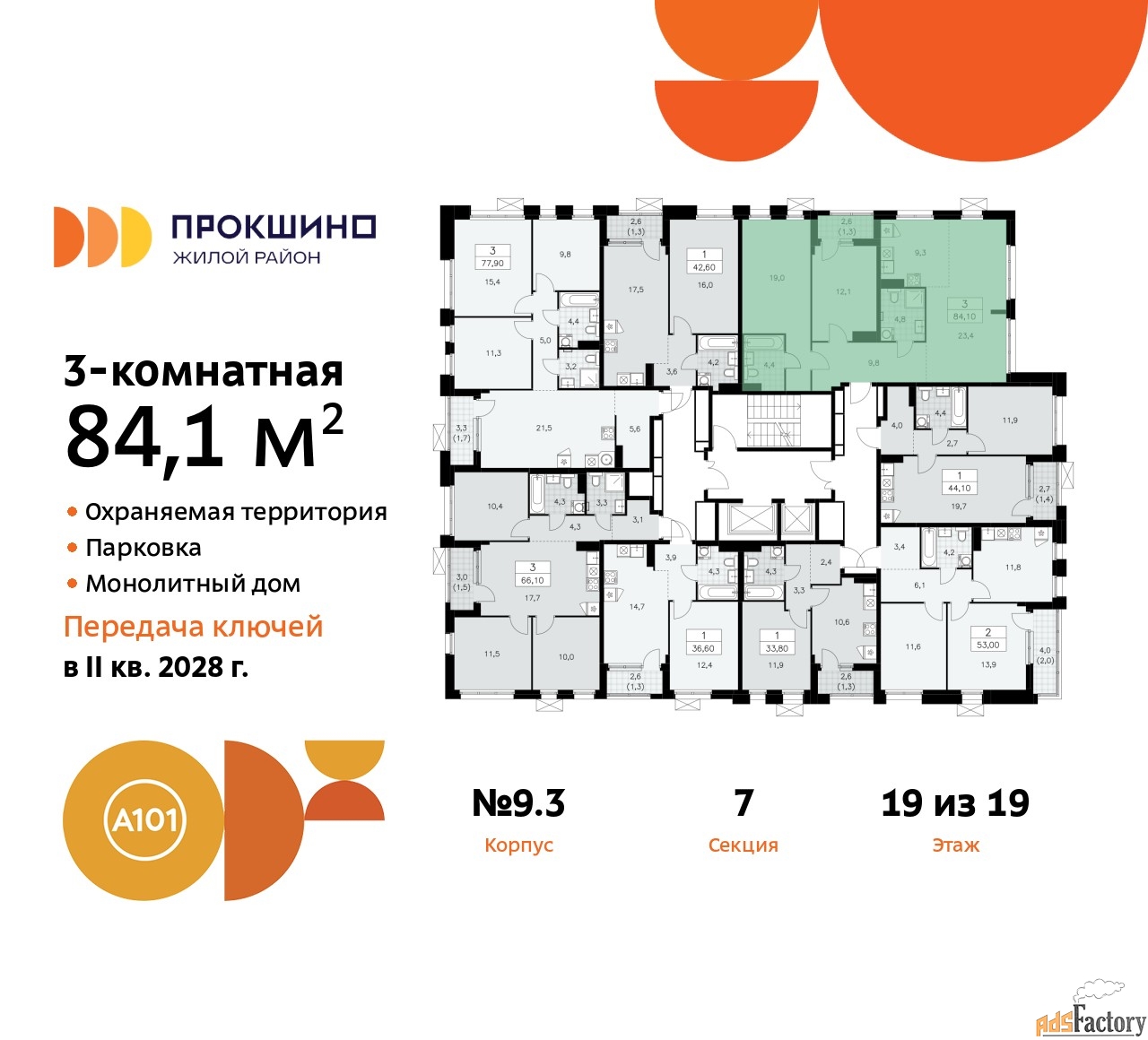 Квартира находится в корпусе 9.3. Дом монолитный, одноподъездный, высотой 19 этажей. На этаже 9 квартир. В подъезде 1 пассажирский и 1 грузовой лифт. Начало строительства - 3 квартал 2025 года. Окончание строительства - 4 квартал 2027 года. Оформление сделки по договору долевого участия.