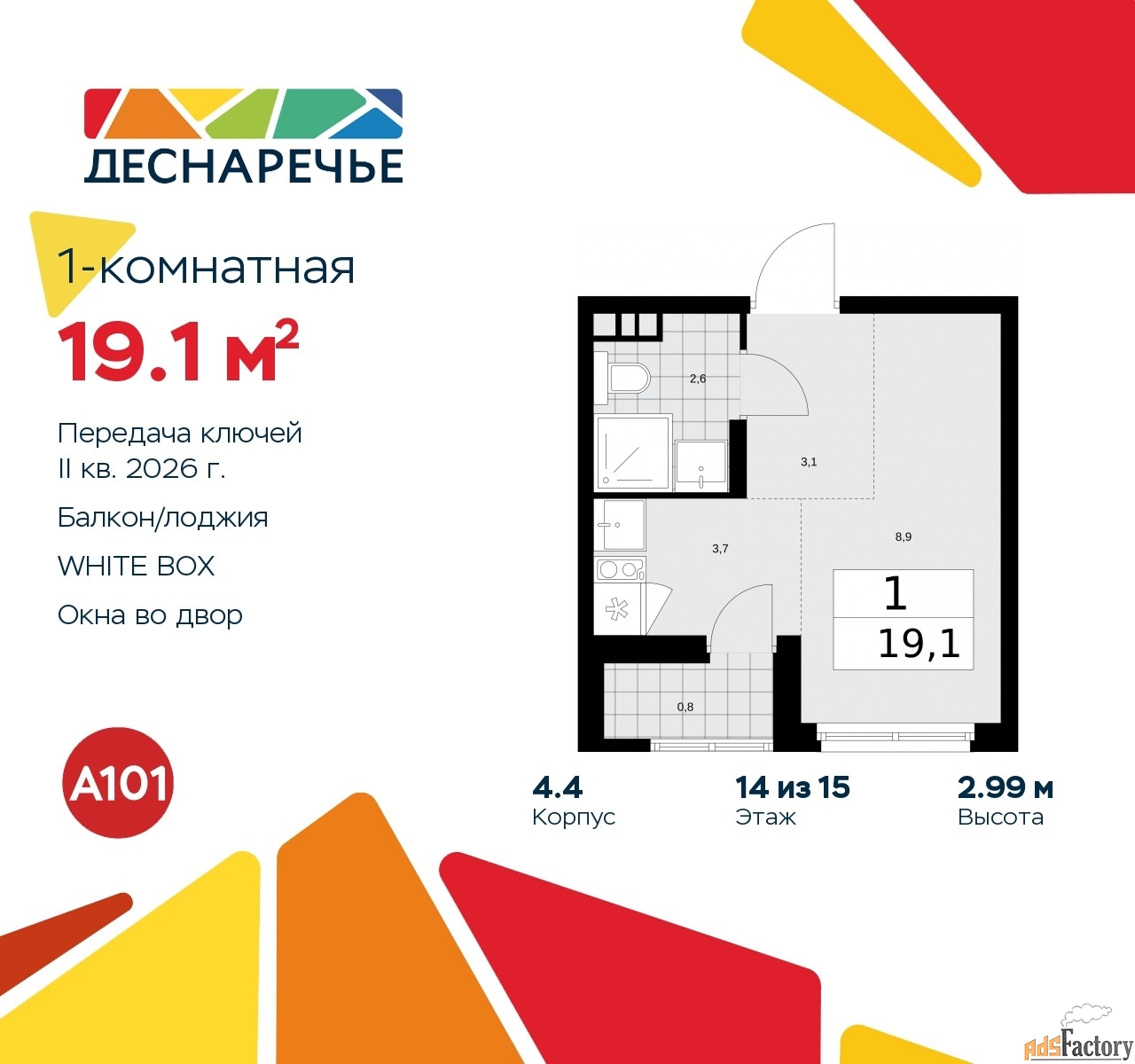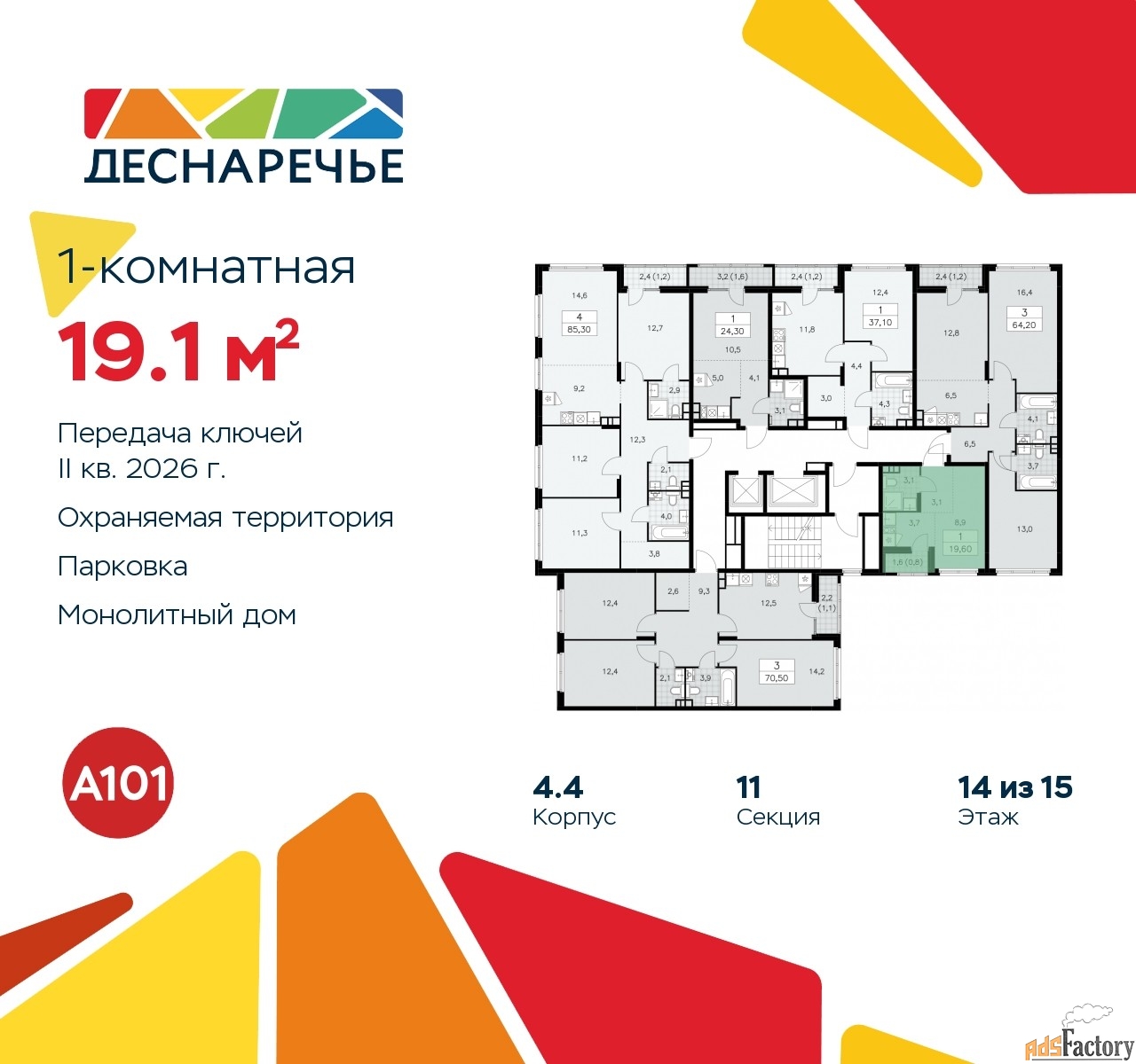 Дом монолитный, черырехподъездный, высотой 15 этажей. Квартира находится во 2-й секции в корпусе 4.4. На этаже 6 квартир. В подъезде 1 пассажирский и 1 грузовой лифт. Начало строительства - 3 квартал 2023 года. Окончание строительства - 2 квартал 2026 года. Оформление сделки по договору долевого участия.