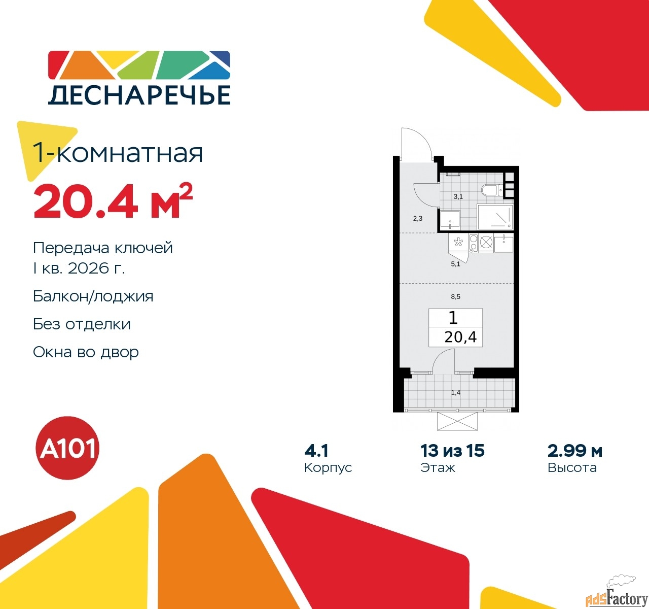 Дом монолитный, трехподъездный, высотой 15 этажей. Квартира находится в 1-й секции в корпусе 4.1. На этаже 6 квартир. В подъезде 1 пассажирский и 1 грузовой лифт. Начало строительства - 3 квартал 2023 года. Окончание строительства - 1 квартал 2026 года. Оформление сделки по договору долевого участия.