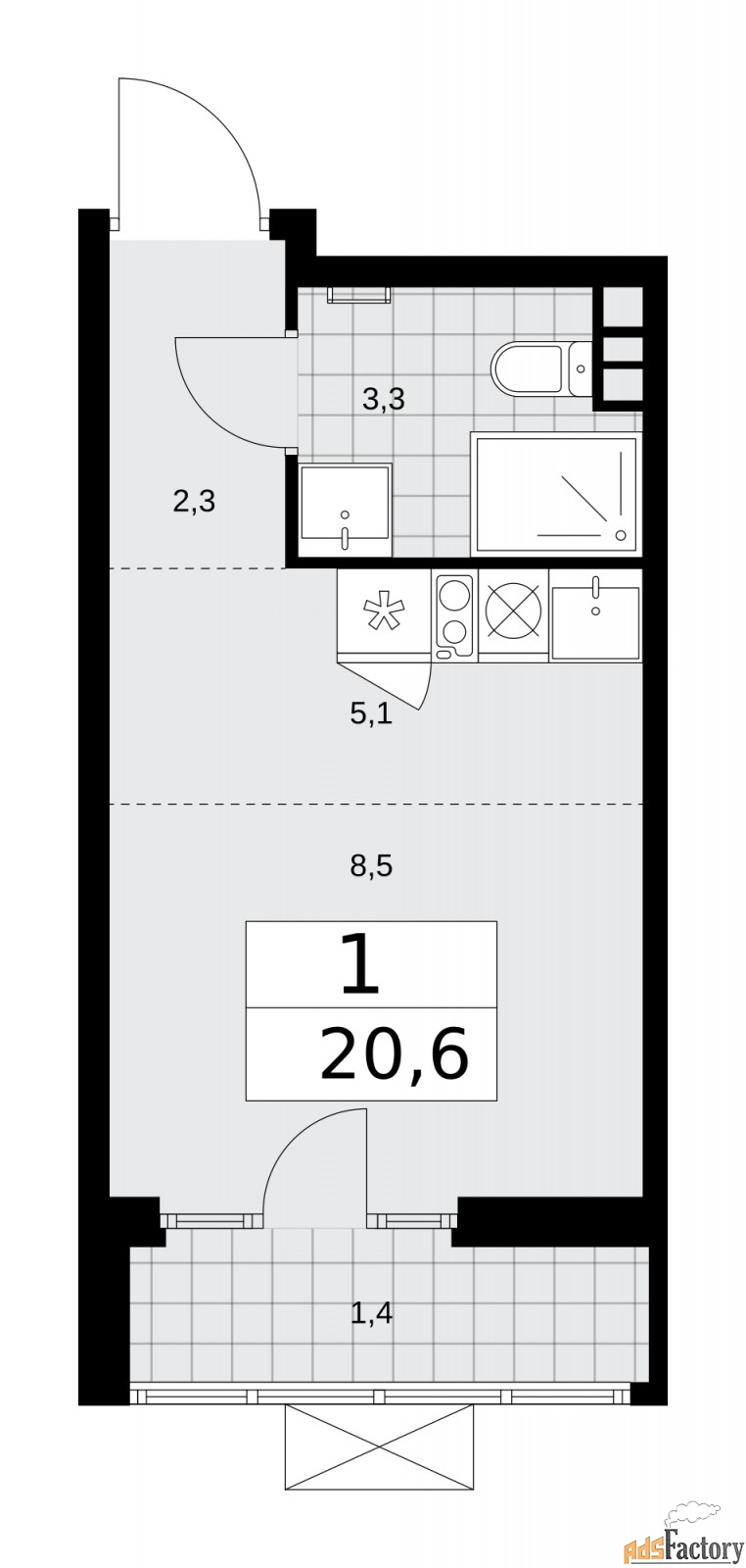 | Общая площадь (кв.м) | 20.6 |