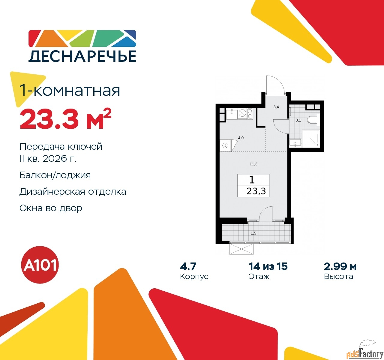 | Общая площадь (кв.м) | 23.3 |