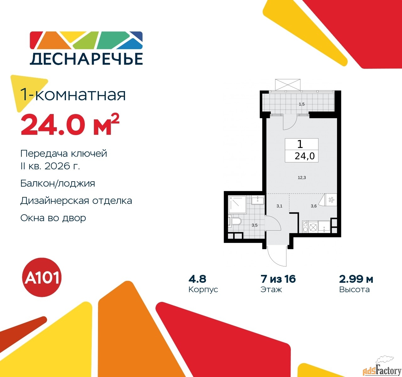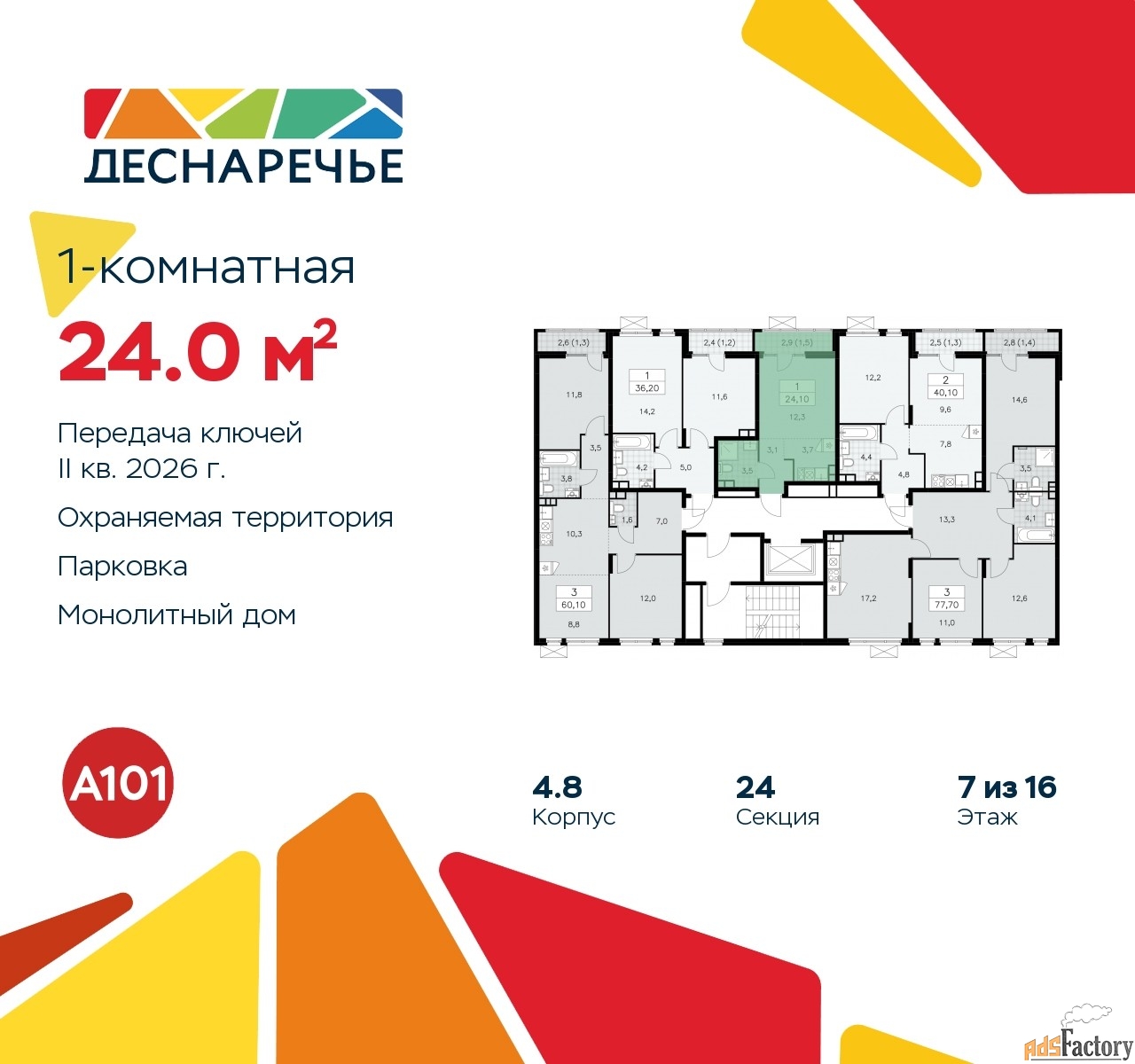 Дом монолитный, многоподъездный, переменной этажности, от 7 до 16 этажей. Квартира находится в 3-й секции высотой 7 этажей в корпусе 4.8. На этаже 5 квартир. В подъезде 1 грузовой лифт. Начало строительства - 3 квартал 2023 года. Окончание строительства - 2 квартал 2026 года. Оформление сделки по договору долевого участия.