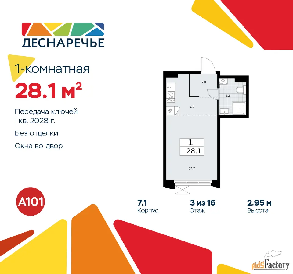 Дом монолитный, многоподъездный, переменной этажности, от 8 до 16 этажей. Квартира находится в 4-й секции высотой 11 этажей в корпусе 7.1. На этаже 5 квартир. В подъезде 1 пассажирский и 1 грузовой лифт. Начало строительства - 2 квартал 2025 года. Окончание строительства - 1 квартал 2028 года. Оформление сделки по договору долевого участия.