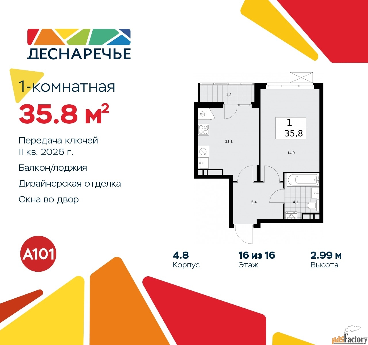Дом монолитный, многоподъездный, переменной этажности, от 7 до 16 этажей. Квартира находится во 2-й секции высотой 16 этажей в корпусе 4.8. На этаже 5 квартир. В подъезде 1 пассажирский и 1 грузовой лифт. Начало строительства - 3 квартал 2023 года. Окончание строительства - 2 квартал 2026 года. Оформление сделки по договору долевого участия.