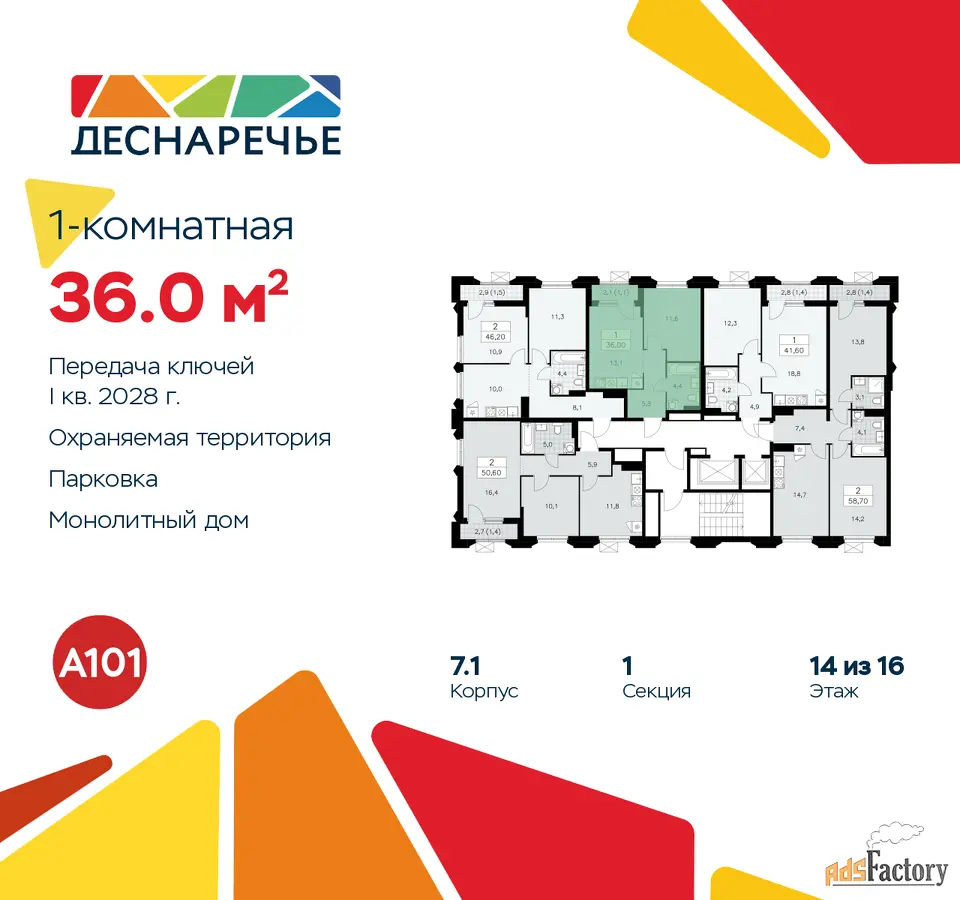 Дом монолитный, многоподъездный, переменной этажности, от 8 до 16 этажей. Квартира находится в 1-й секции высотой 14 этажей в корпусе 7.1. На этаже 5 квартир. В подъезде 1 пассажирский и 1 грузовой лифт. Начало строительства - 2 квартал 2025 года. Окончание строительства - 1 квартал 2028 года. Оформление сделки по договору долевого участия.