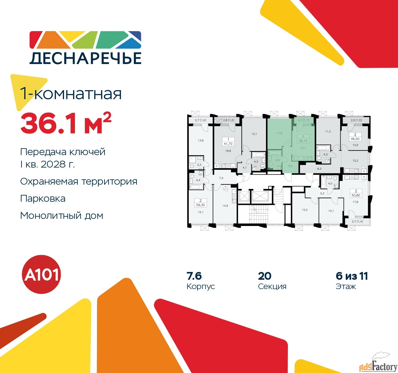 Дом монолитный, двухподъездный, высотой 11 этажей. Квартира находится во 2-й секции в корпусе 7.6. На этаже 5 квартир. В подъезде 1 пассажирский и 1 грузовой лифт. Начало строительства - 2 квартал 2025 года. Окончание строительства - 1 квартал 2028 года. Оформление сделки по договору долевого участия.