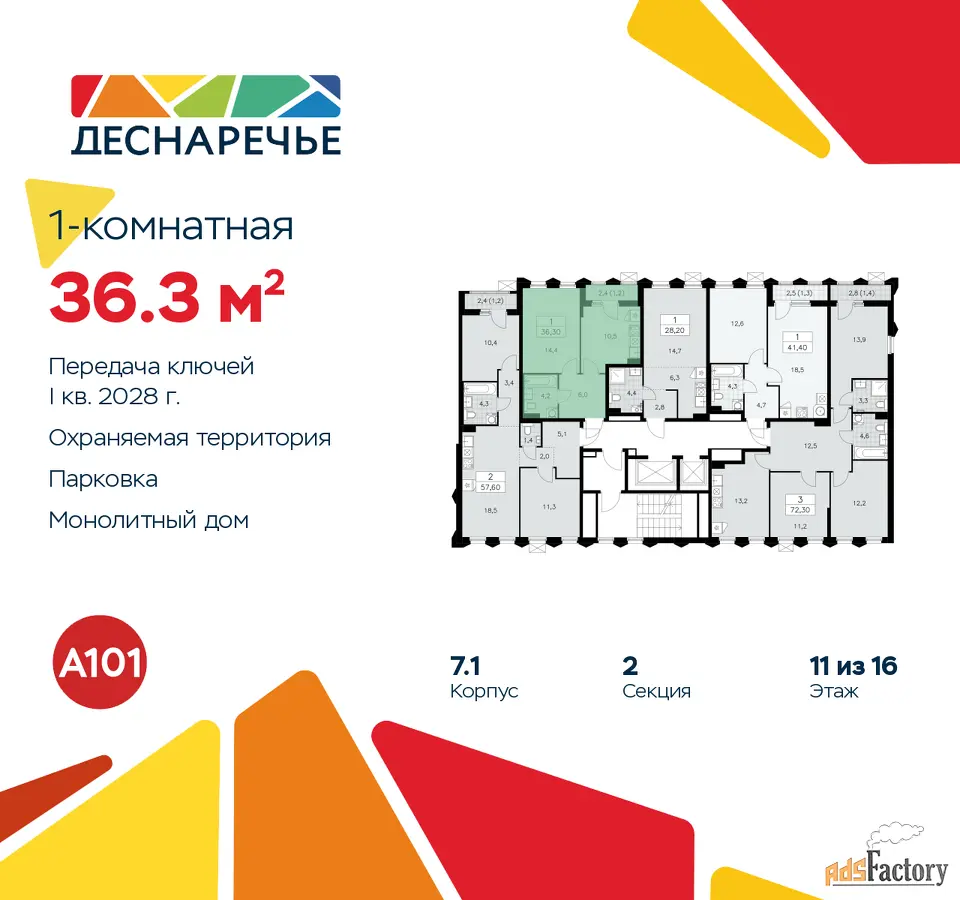 Дом монолитный, многоподъездный, переменной этажности, от 8 до 16 этажей. Квартира находится во 2-й секции высотой 11 этажей в корпусе 7.1. На этаже 5 квартир. В подъезде 1 пассажирский и 1 грузовой лифт. Начало строительства - 2 квартал 2025 года. Окончание строительства - 1 квартал 2028 года. Оформление сделки по договору долевого участия.