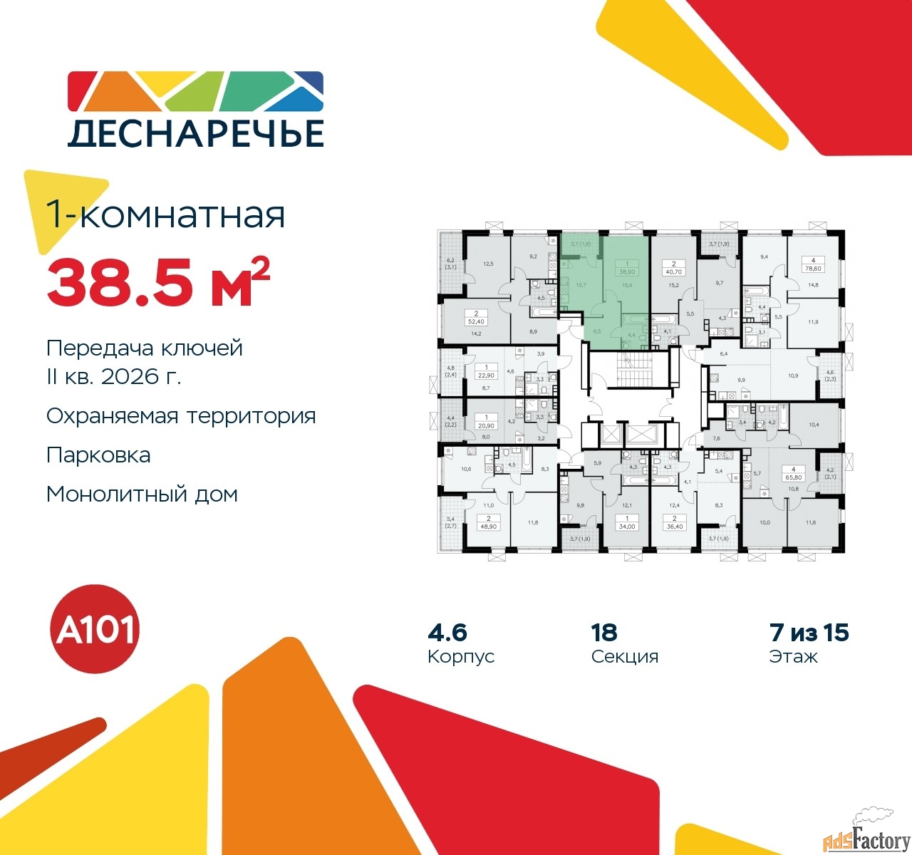 Квартира находится в корпусе 4.6. Дом монолитный, одноподъездный, высотой 15 этажей. На этаже 10 квартир. В подъезде 1 пассажирский и 1 грузовой лифт. Начало строительства - 3 квартал 2023 года. Окончание строительства - 2 квартал 2026 года. Оформление сделки по договору долевого участия.