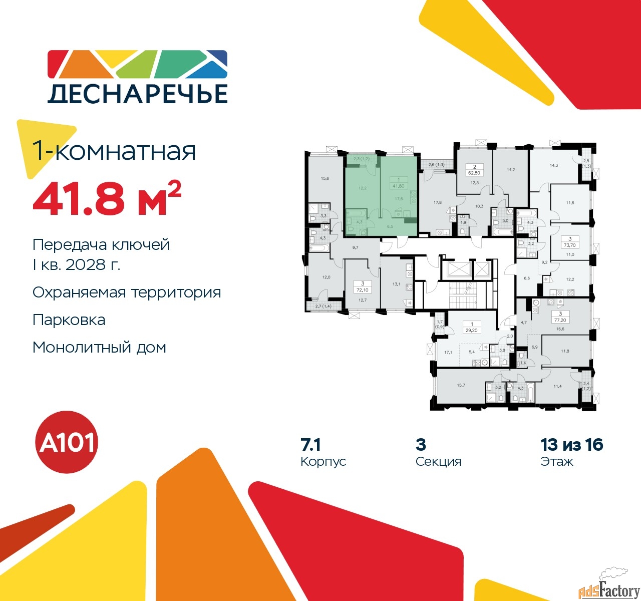 Дом монолитный, многоподъездный, переменной этажности, от 8 до 16 этажей. Квартира находится в 3-й секции высотой 14 этажей в корпусе 7.1. На этаже 6 квартир. В подъезде 1 пассажирский и 1 грузовой лифт. Начало строительства - 2 квартал 2025 года. Окончание строительства - 1 квартал 2028 года. Оформление сделки по договору долевого участия.