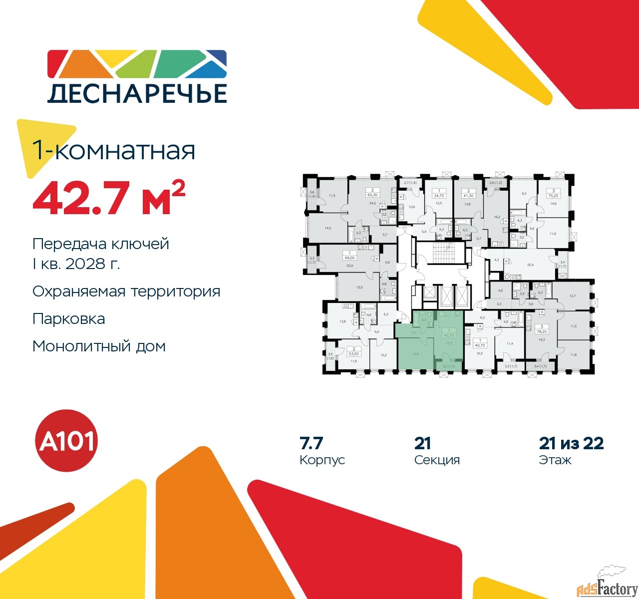Квартира находится в корпусе 7.7. Дом монолитный, одноподъездный, высотой 22 этажа. На этаже 9 квартир. В подъезде 1 пассажирский и 2 грузовых лифта. Начало строительства - 2 квартал 2025 года. Окончание строительства - 1 квартал 2028 года. Оформление сделки по договору долевого участия.