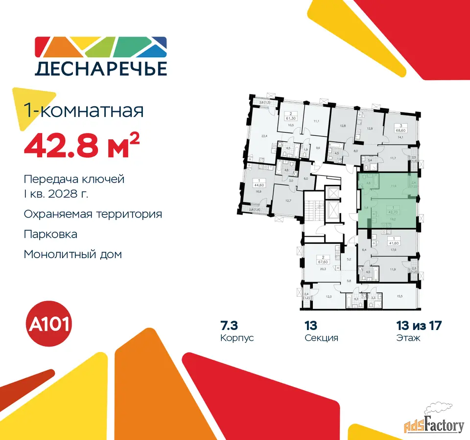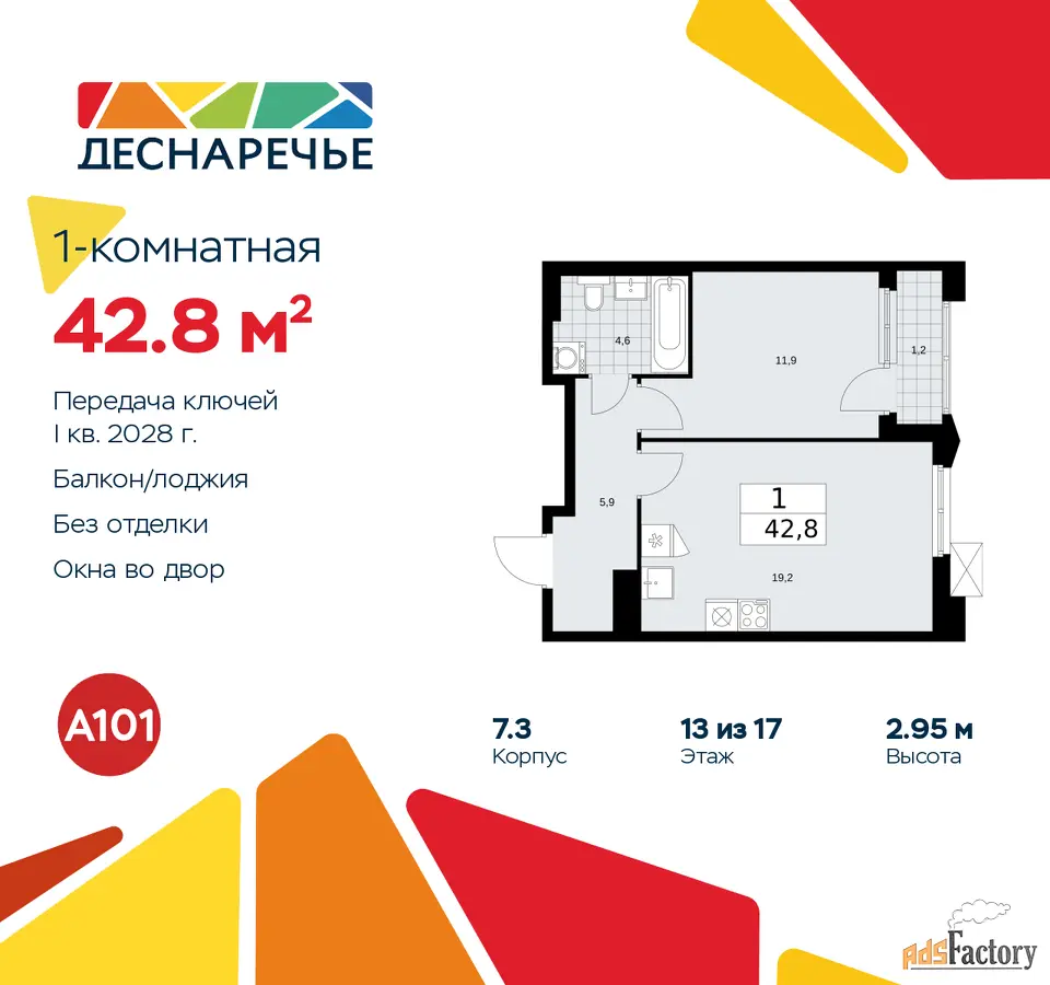 | Общая площадь (кв.м) | 42.8 |