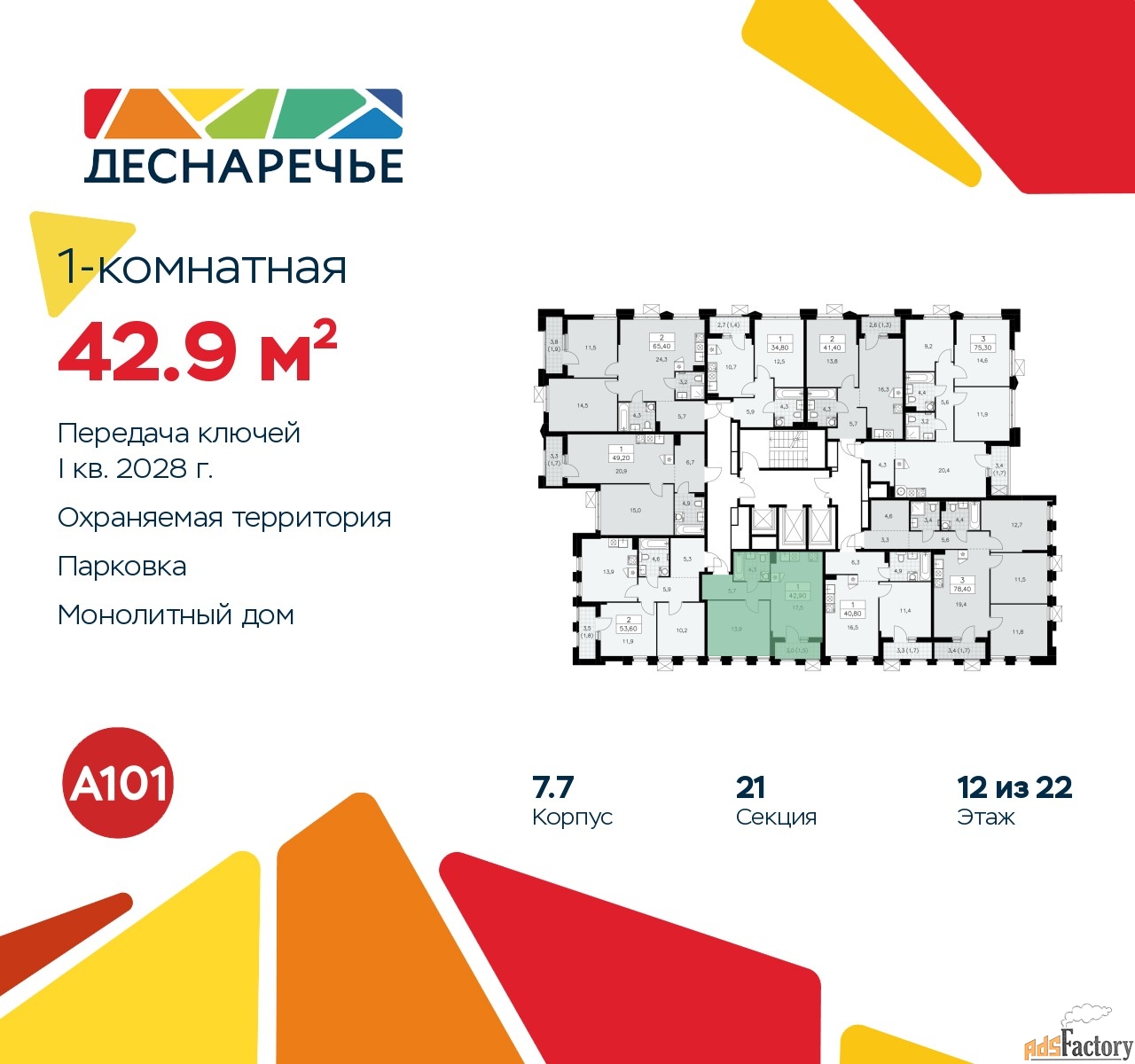 | Общая площадь (кв.м) | 42.9 |