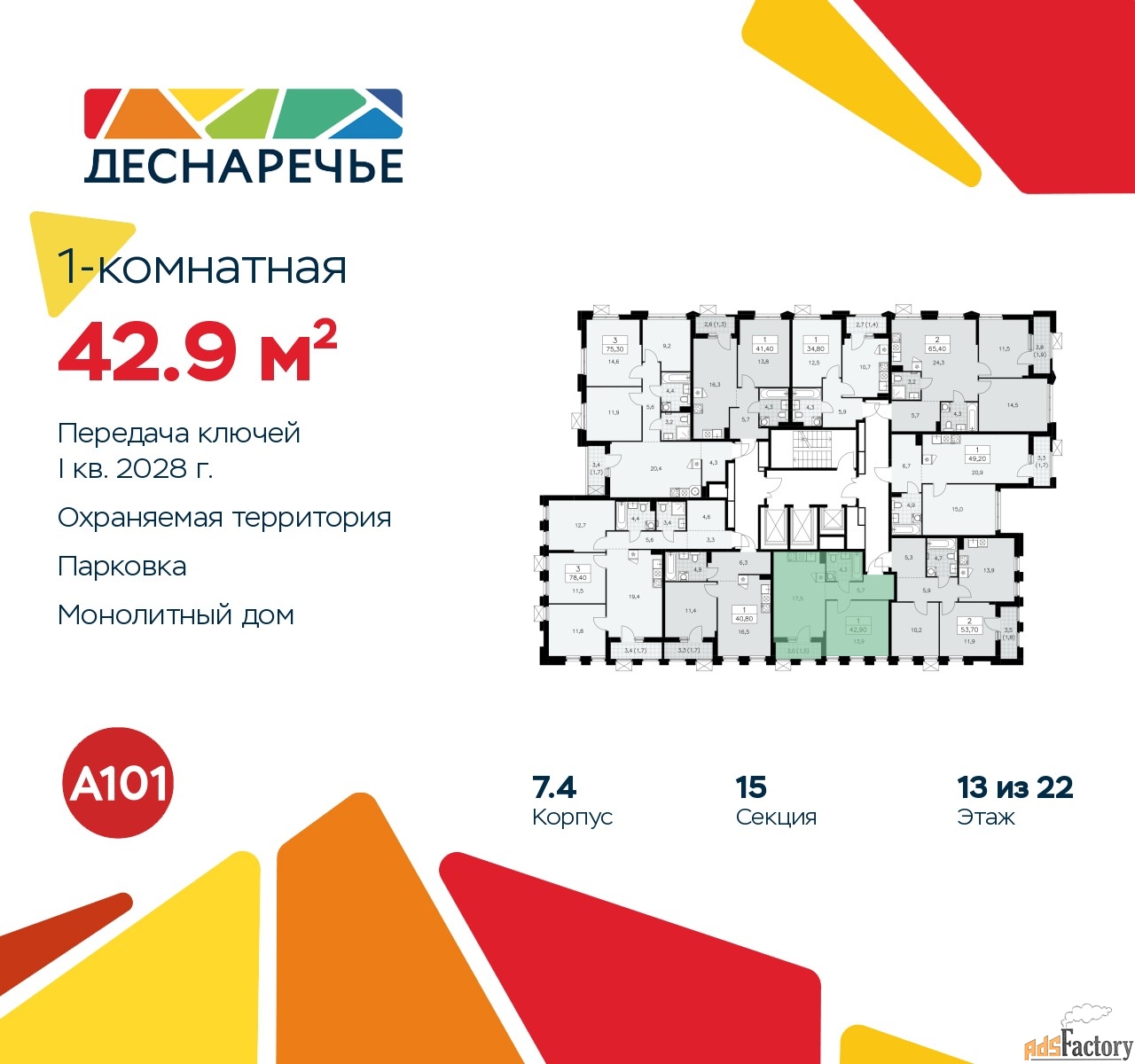 | Общая площадь (кв.м) | 42.9 |