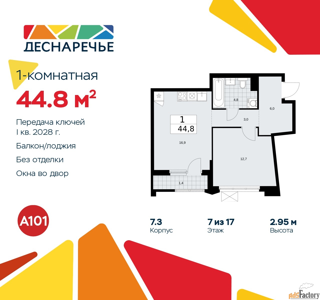 Дом монолитный, черырехподъездный, переменной этажности, от 9 до 17 этажей. Квартира находится в 3-й секции высотой 17 этажей в корпусе 7.3. На этаже 5 квартир. В подъезде 1 пассажирский и 1 грузовой лифт. Начало строительства - 2 квартал 2025 года. Окончание строительства - 1 квартал 2028 года. Оформление сделки по договору долевого участия.