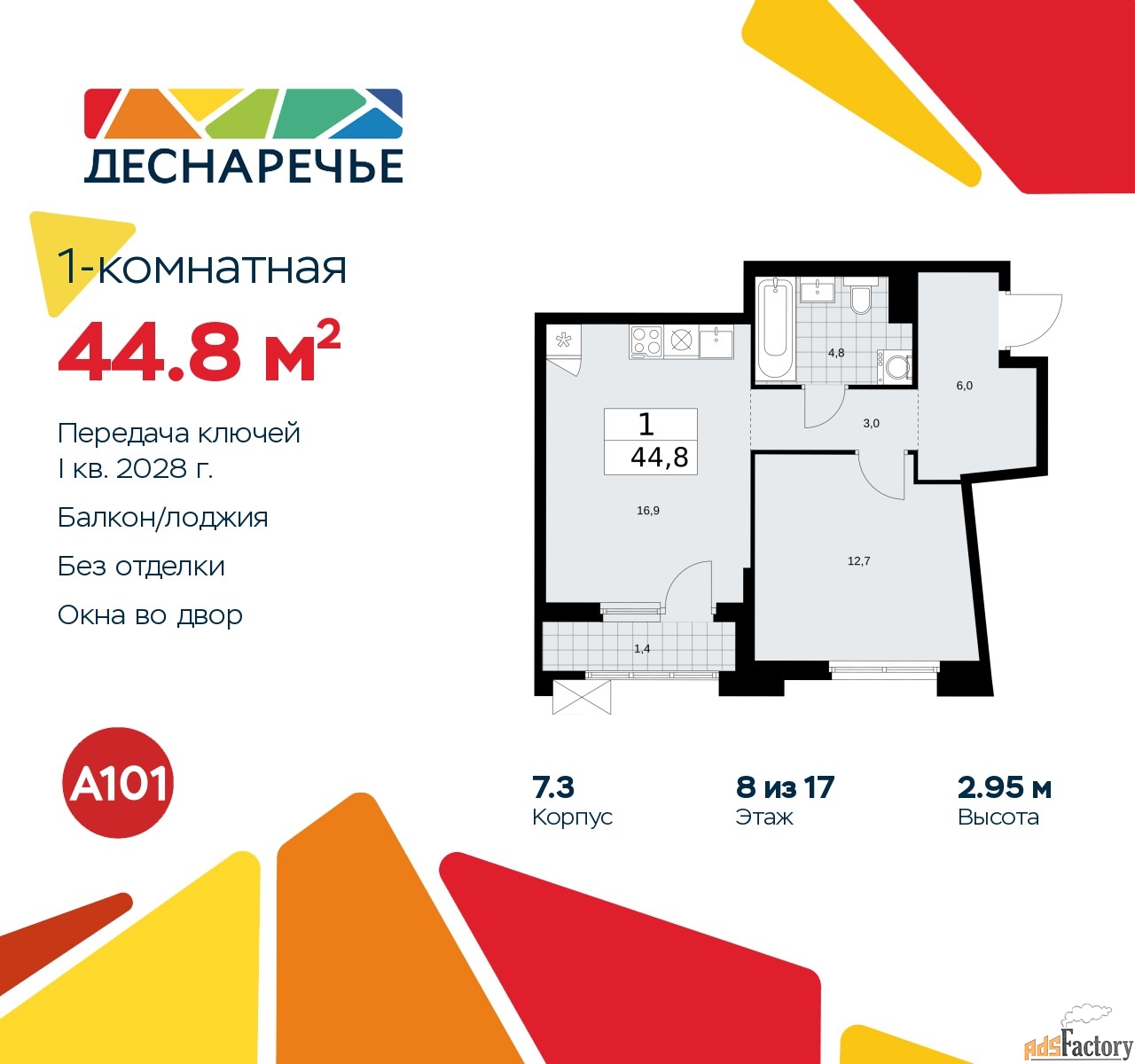 | Общая площадь (кв.м) | 44.8 |