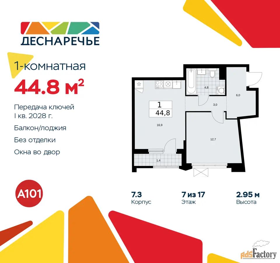Дом монолитный, черырехподъездный, переменной этажности, от 9 до 17 этажей. Квартира находится в 3-й секции высотой 17 этажей в корпусе 7.3. На этаже 5 квартир. В подъезде 1 пассажирский и 1 грузовой лифт. Начало строительства - 2 квартал 2025 года. Окончание строительства - 1 квартал 2028 года. Оформление сделки по договору долевого участия.