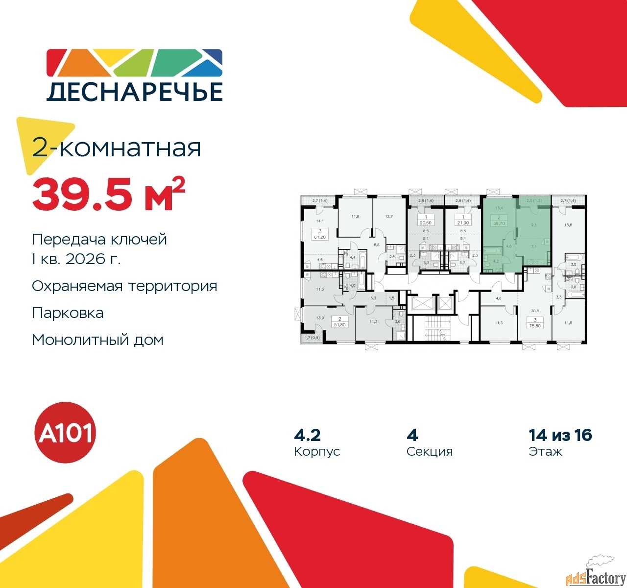 Дом монолитный, многоподъездный, переменной этажности, от 7 до 16 этажей. Квартира находится в 1-й секции высотой 16 этажей в корпусе 4.2. На этаже 6 квартир. В подъезде 1 пассажирский и 1 грузовой лифт. Начало строительства - 3 квартал 2023 года. Окончание строительства - 1 квартал 2026 года. Оформление сделки по договору долевого участия.