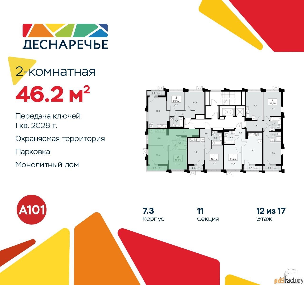| Общая площадь (кв.м) | 46.2 |