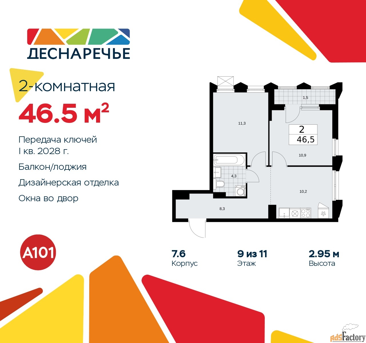 | Общая площадь (кв.м) | 46.5 |