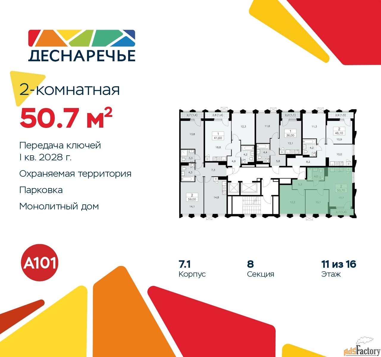 Дом монолитный, многоподъездный, переменной этажности, от 8 до 16 этажей. Квартира находится в 8-й секции высотой 11 этажей в корпусе 7.1. На этаже 5 квартир. В подъезде 1 пассажирский и 1 грузовой лифт. Начало строительства - 2 квартал 2025 года. Окончание строительства - 1 квартал 2028 года. Оформление сделки по договору долевого участия.