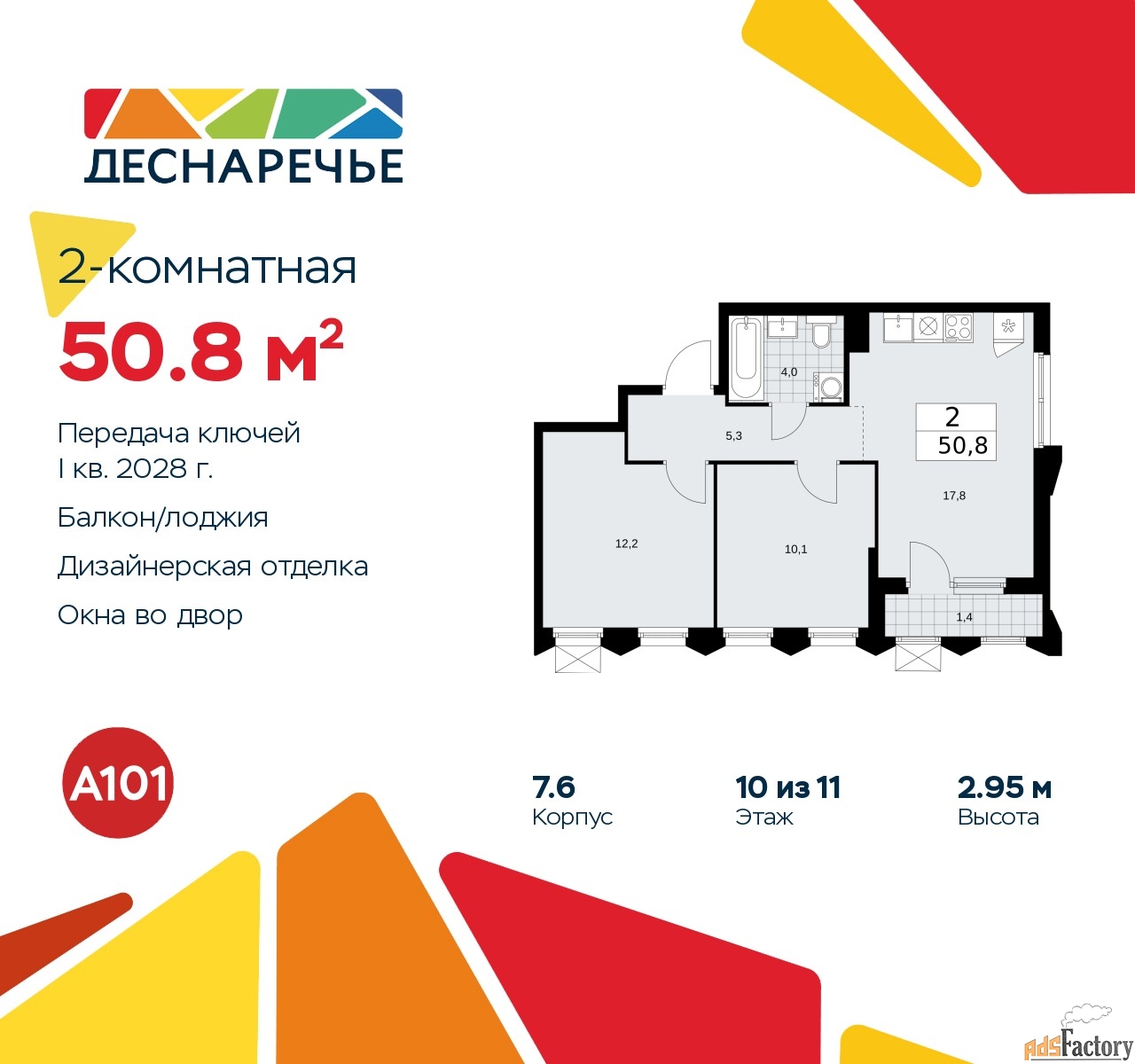 Дом монолитный, двухподъездный, высотой 11 этажей. Квартира находится во 2-й секции в корпусе 7.6. На этаже 5 квартир. В подъезде 1 пассажирский и 1 грузовой лифт. Начало строительства - 2 квартал 2025 года. Окончание строительства - 1 квартал 2028 года. Оформление сделки по договору долевого участия.