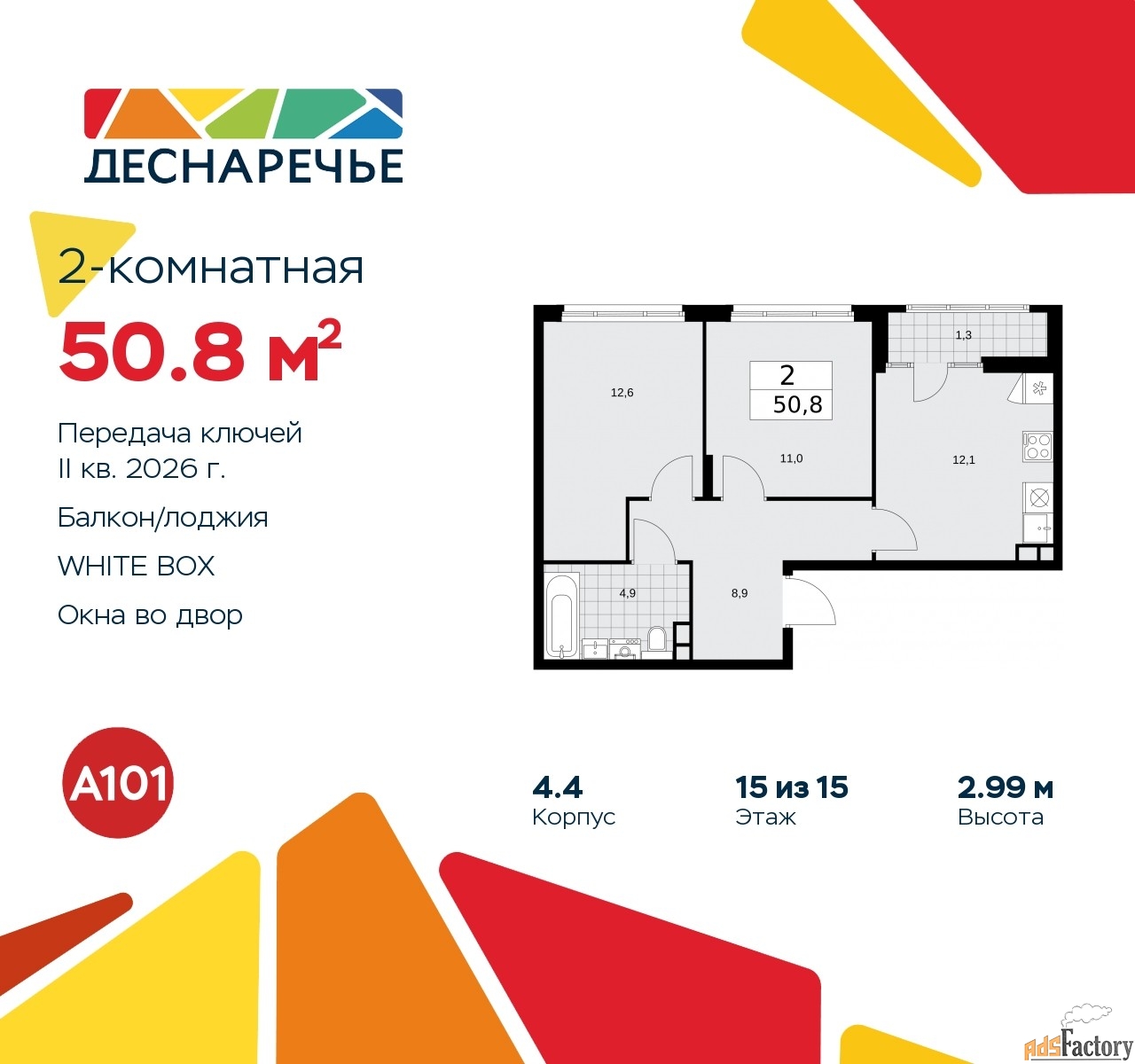 Дом монолитный, черырехподъездный, высотой 15 этажей. Квартира находится в 4-й секции в корпусе 4.4. На этаже 6 квартир. В подъезде 1 пассажирский и 1 грузовой лифт. Начало строительства - 3 квартал 2023 года. Окончание строительства - 2 квартал 2026 года. Оформление сделки по договору долевого участия.