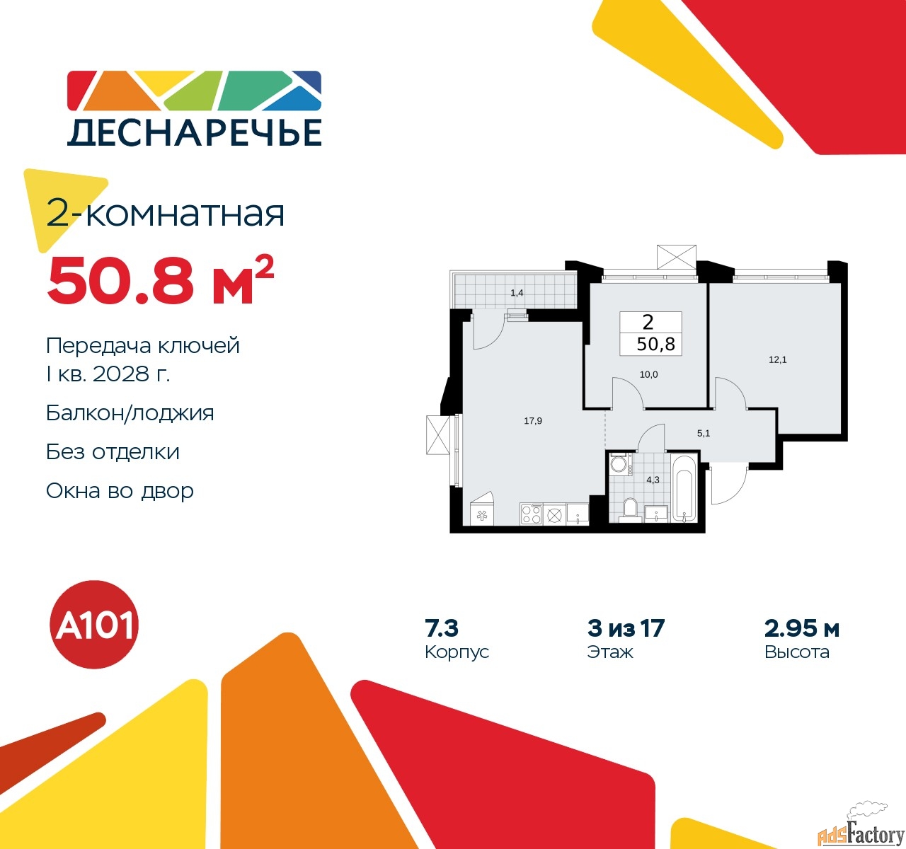 Дом монолитный, черырехподъездный, переменной этажности, от 9 до 17 этажей. Квартира находится в 1-й секции высотой 15 этажей в корпусе 7.3. На этаже 5 квартир. В подъезде 1 пассажирский и 1 грузовой лифт. Начало строительства - 2 квартал 2025 года. Окончание строительства - 1 квартал 2028 года. Оформление сделки по договору долевого участия.